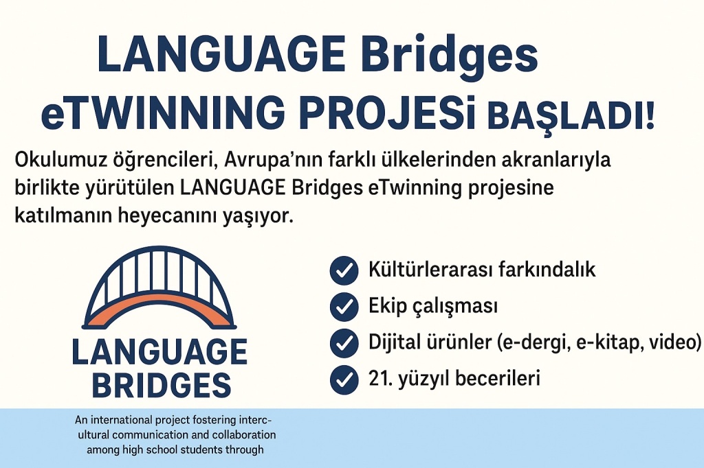 Okulumuz öğrencileri, Avrupa’nın farklı ülkelerinden akranlarıyla birlikte yürütülen LANGUAGE Bridges eTwinning projesine katılmanın heyecanını yaşıyor.